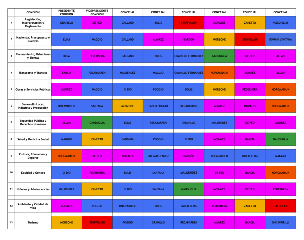 “Tomamos la decisión de respetar estrictamente la representación que eligieron los vecinos y vecinas en las urnas. Cada bloque debe tener en las comisiones el lugar que le corresponde dentro del Concejo”, explicó Galland al justificar el criterio aplicado para la distribución.