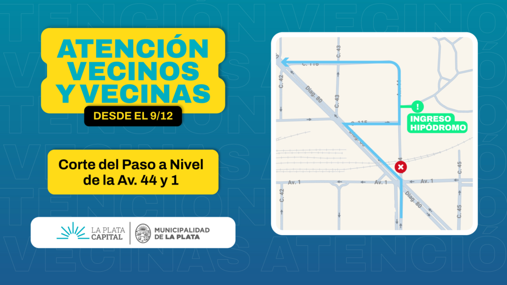 En detalle, quienes circulen por avenida 44 en dirección hacia calle 1 deberán desviarse obligatoriamente por diagonal 80, para luego empalmar nuevamente con 44 y retomar la marcha. En tanto, los conductores que avancen por calle 1 solo podrán girar a la derecha por diagonal 80, sin posibilidad de continuar de frente.