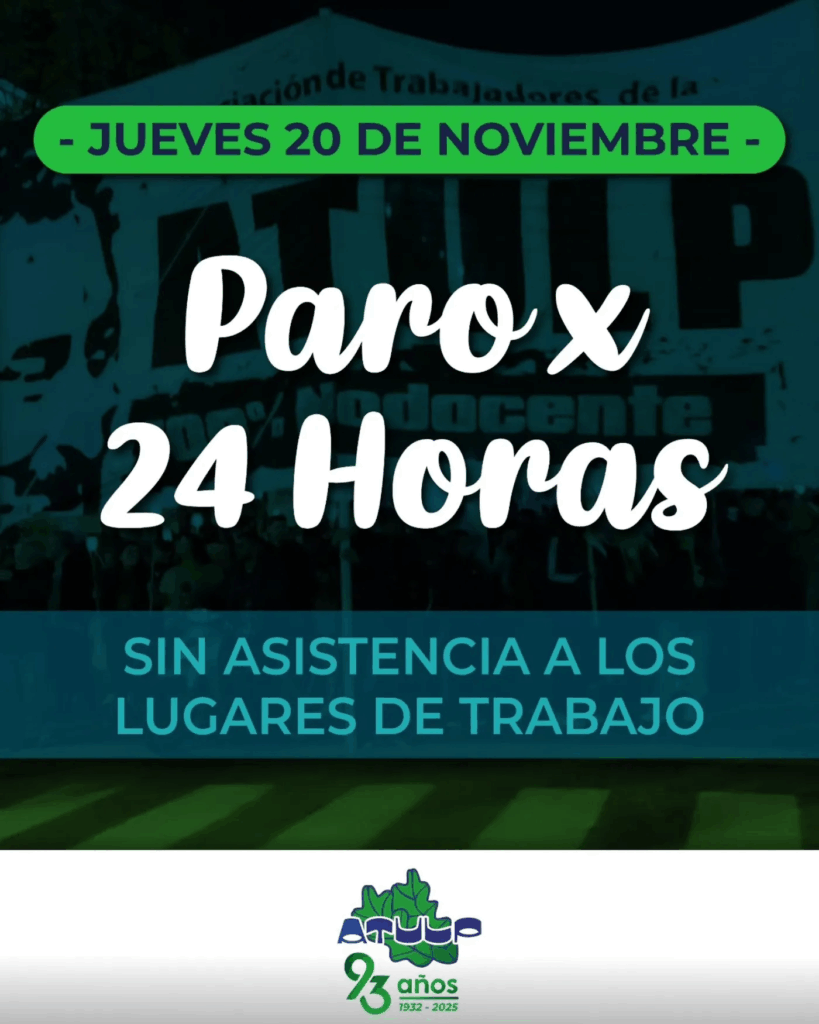 A este escenario se suma el paro total de actividades convocado por la Asociación de Trabajadores de la UNLP (ATULP) para el jueves 20, en línea con el plan de lucha nacional de FATUN, que reclama la puesta en marcha de la Ley de Financiamiento Universitario y advierte sobre el desfinanciamiento del sistema.