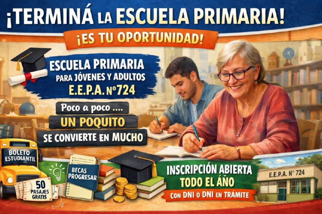 En un contexto donde la educación vuelve a aparecer como una herramienta clave para mejorar oportunidades laborales y sociales, la Escuela de Educación Primaria para Adultos (EEPA) N° 724 de La Plata mantiene abierta durante todo el año la inscripción para quienes deseen finalizar sus estudios primarios.