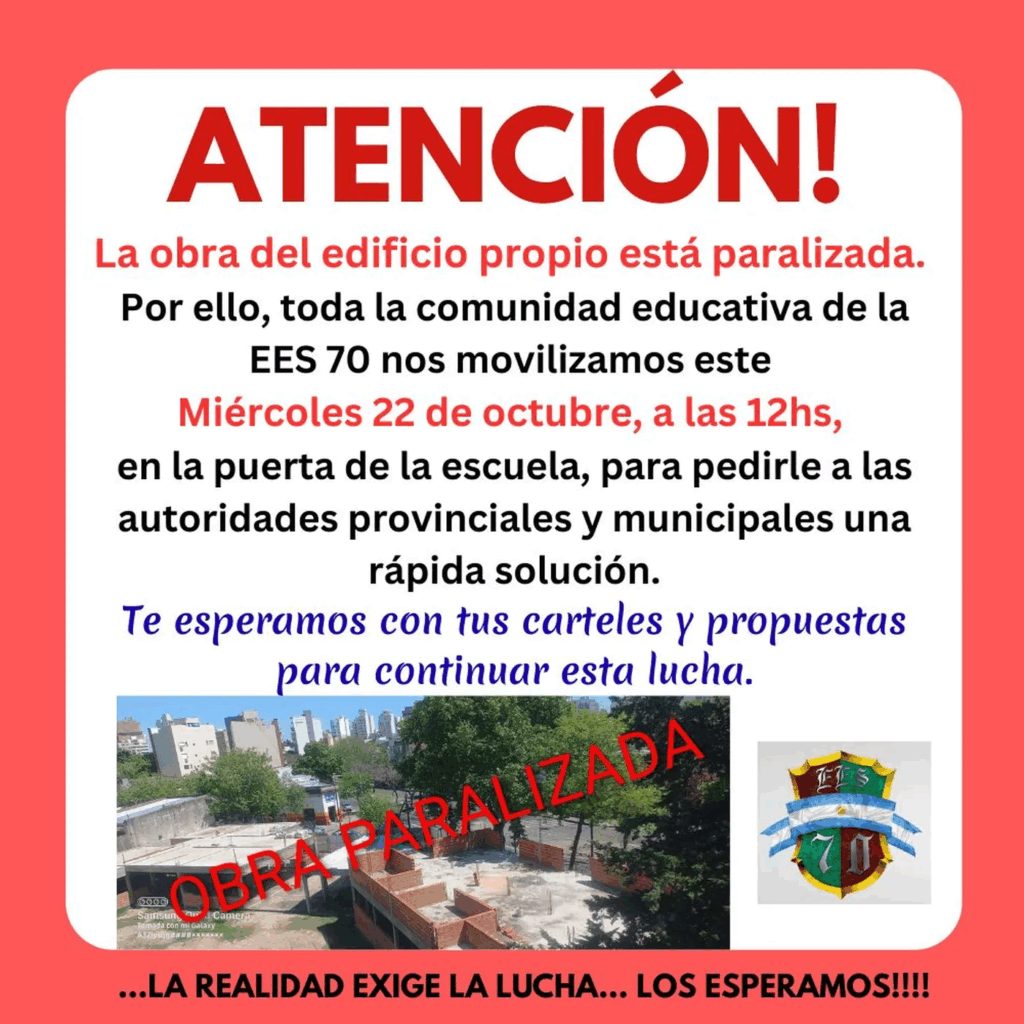 La Escuela Secundaria N°70 arrastra una larga historia de reclamos por falta de infraestructura adecuada. El edificio actual presenta serias deficiencias edilicias y no reúne las condiciones necesarias para el desarrollo de las clases.