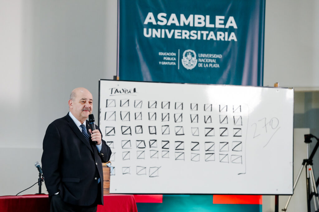 La Asamblea se desarrolló en el auditorio de la Facultad de Psicología y se extendió por más de siete horas. Más de 50 oradores manifestaron públicamente su apoyo a la candidatura de Tauber, con discursos que coincidieron en la defensa de la educación pública, gratuita e inclusiva. En paralelo, se renovó el pedido al Gobierno Nacional por el cumplimiento de la Ley de Financiamiento Universitario, un reclamo que atraviesa a todas las universidades públicas del país y que impacta directamente en el funcionamiento de la UNLP.