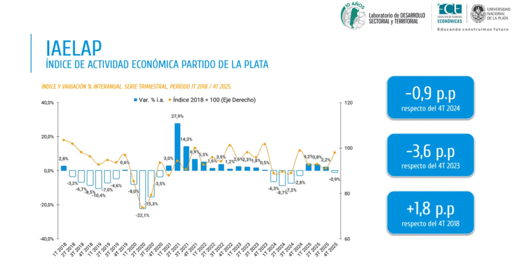 La economía de La Plata entró en una zona de estancamiento que ya muestra señales concretas en la actividad, el empleo y el consumo. Los datos del último informe de la Universidad Nacional de La Plata confirman que el leve repunte registrado durante 2025 se diluyó hacia el cierre del año, con una caída del 0,9% interanual en el cuarto trimestre.