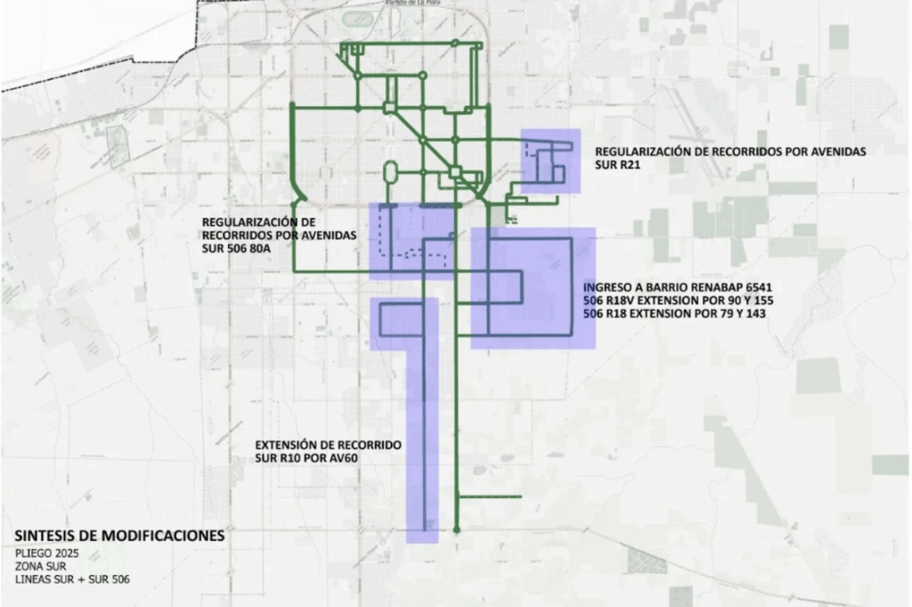 Identificada con las líneas 561 y 508, es una de las que ya incorporó micros sustentables con energías alternativas. Su cobertura se ampliará en un 14%, de 526,8 a 600,6 kilómetros, convirtiéndose en la de mayor extensión. Se sumarán rondines hacia El Peligro, Abasto y el Parque Industrial II, además de un ramal extendido hacia el Frigorífico Gorina. También prevé dos servicios rápidos por las avenidas 520 y 44, para agilizar el ingreso y egreso del casco urbano.