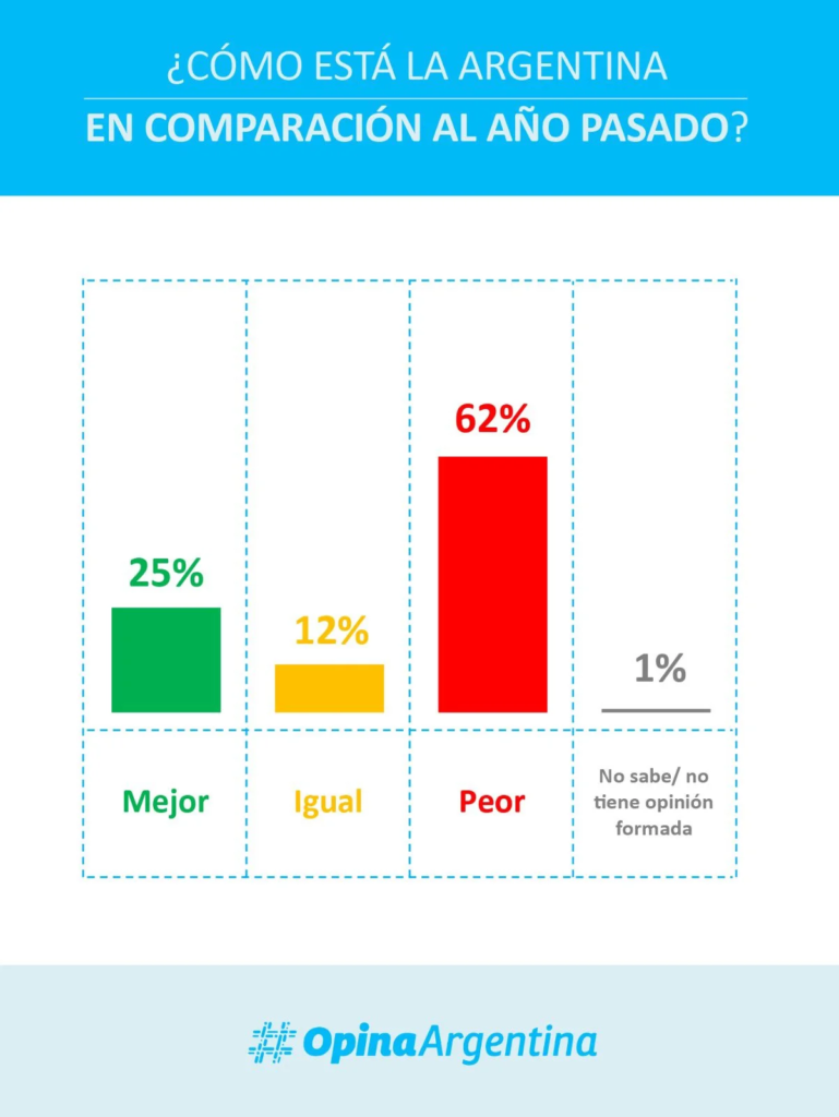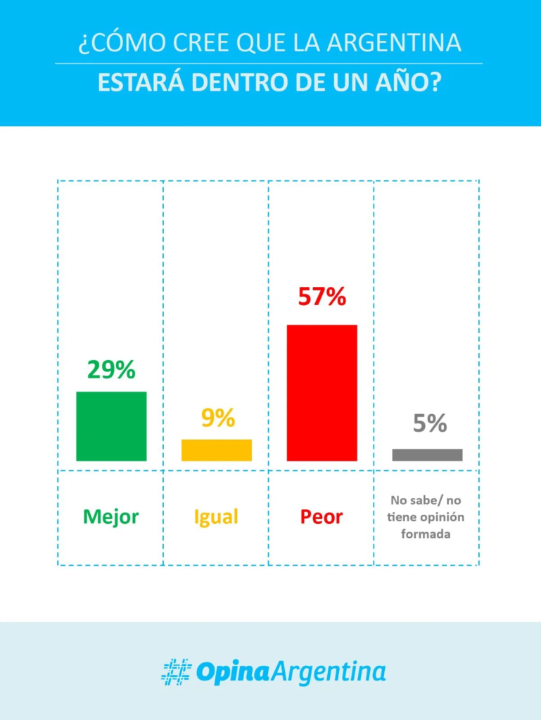 El dato más contundente es el de las expectativas: sólo el 30,3% de los argentinos cree que el país va a mejorar o mantenerse estable en el próximo año, mientras que el resto proyecta un escenario igual o peor.