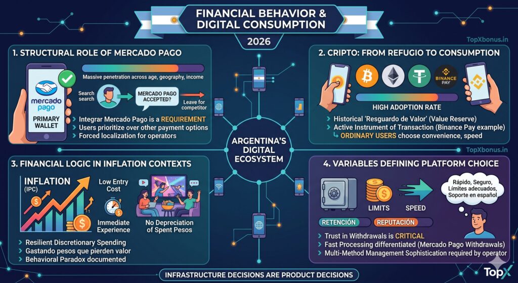 Para el consumidor argentino que administra activamente el poder adquisitivo de su dinero, gastar en entretenimiento digital con pesos que de todas formas perderán valor tiene una lógica financiera propia. Esa racionalidad, aunque no siempre articulada explícitamente, está presente en los patrones de consumo que los operadores de plataformas online observan en el mercado local.