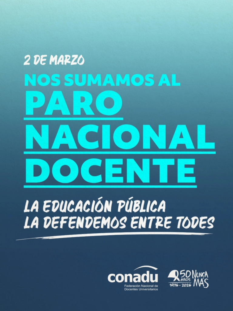 El lunes 2 de marzo el escenario se amplía. La medida universitaria coincide con el paro nacional convocado por la Confederación de Trabajadores de la Educación de la República Argentina (CTERA), que exige la convocatoria a la paritaria nacional docente y un aumento salarial que permita recuperar poder adquisitivo.