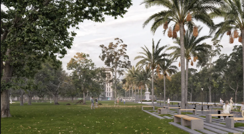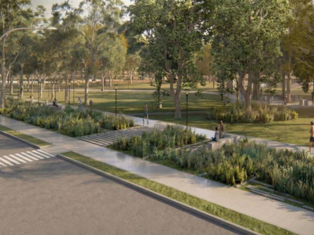 El proyecto contempla achicar las calzadas que rodean el parque —un punto neurálgico entre barrios con alto flujo diario— para ampliar el área destinada a peatones, recreación y permanencia.