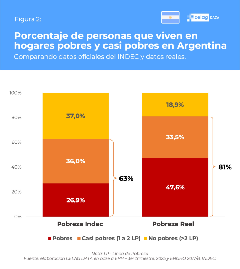 Pero ese cambio introduce un problema clave: rompe la comparabilidad con años anteriores. Es decir, no necesariamente la pobreza bajó tanto, sino que ahora se mide distinto.