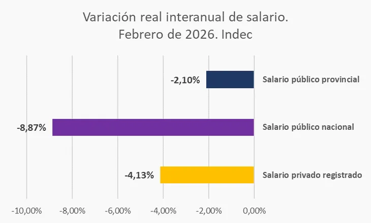 Desde el inicio de la gestión de Javier Milei, los salarios registrados acumulan una caída real cercana al 9%, con un recorte mucho más marcado en el sector estatal.