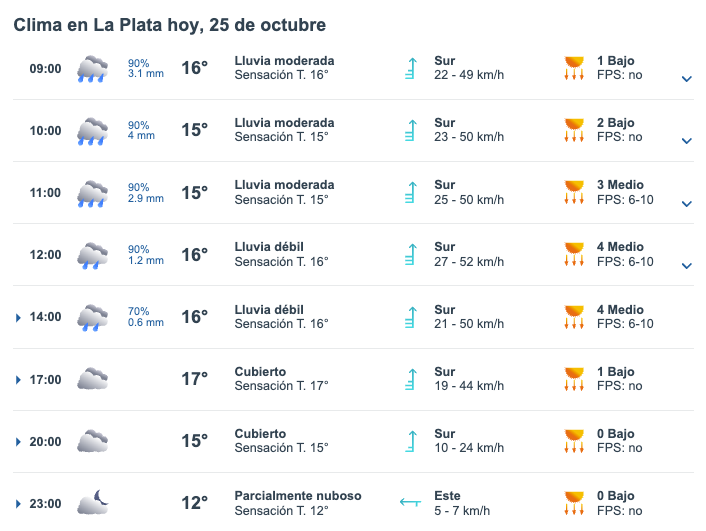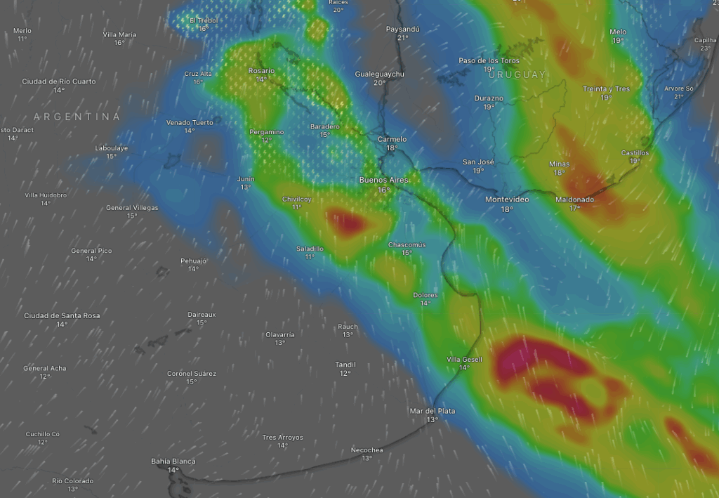 Mientras tanto, el radar en tiempo real de Windy continúa mostrando el avance del frente de tormenta sobre el Gran La Plata. Si las proyecciones se mantienen, las condiciones comenzarían a mejorar después del mediodía, aunque el cielo permanecerá cubierto durante gran parte del sábado.