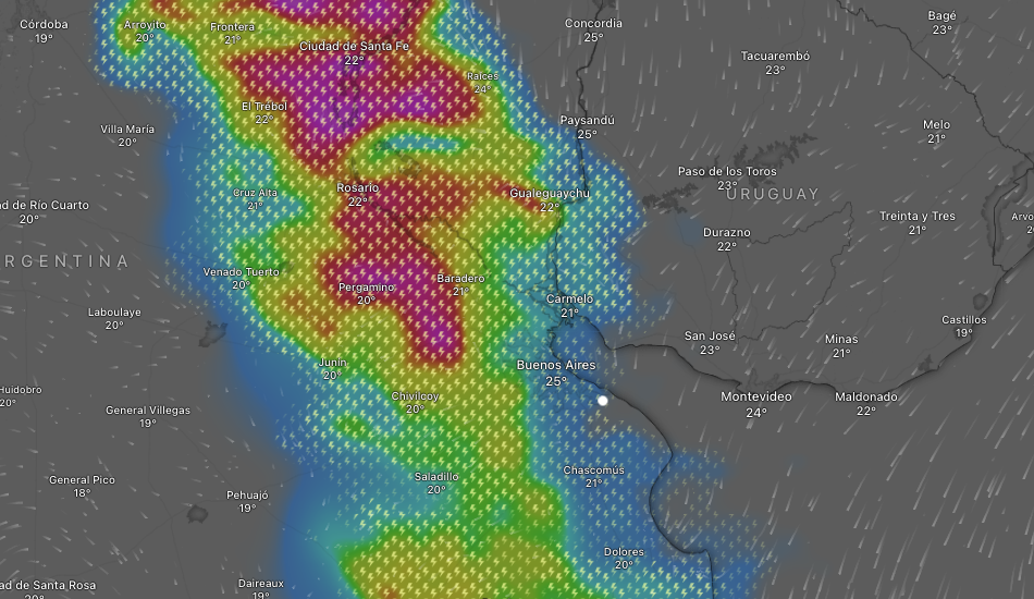 Las plataformas de monitoreo avanzan en la misma dirección. Según las proyecciones del radar Windy, el deterioro del tiempo comenzará entre las 21 y las 22 del sábado, cuando se espera la llegada de los primeros chaparrones. Para quienes tengan compromisos nocturnos, vale la pena tener el paraguas a mano.