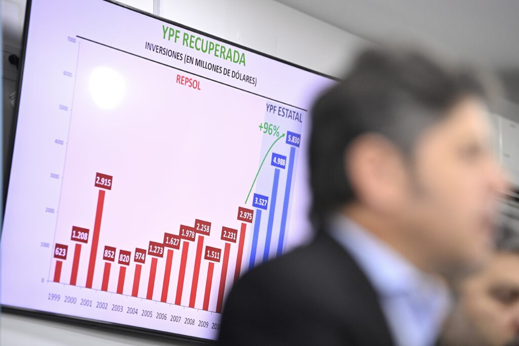 Kicillof sostuvo que durante ese período la producción de petróleo y gas cayó de manera significativa, lo que llevó a la pérdida del autoabastecimiento energético. Ese cambio, explicó, tuvo un impacto directo en la macroeconomía: Argentina pasó de exportar energía a depender de importaciones, con una fuerte presión sobre las reservas.